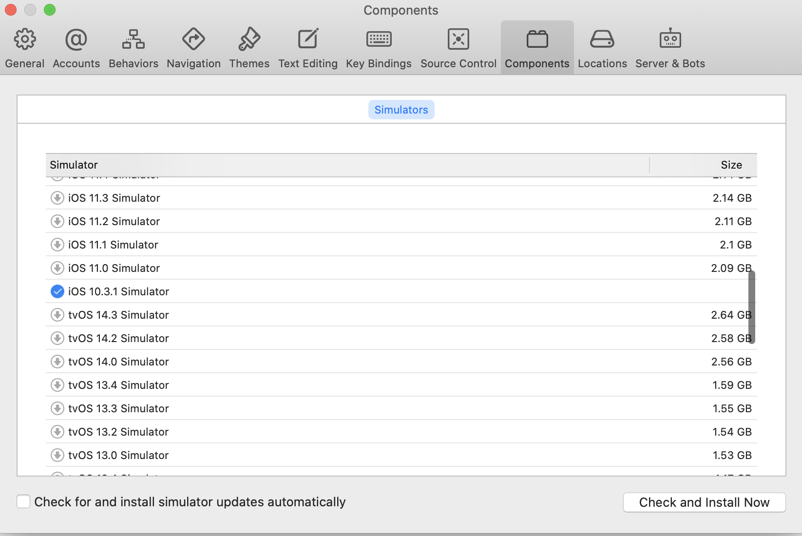 问题还是要解决的,我们从根源出发,模拟用户的系统。 使用 ios 开发者工具 xcode,在 components 中找到 10.3 系统并下载。