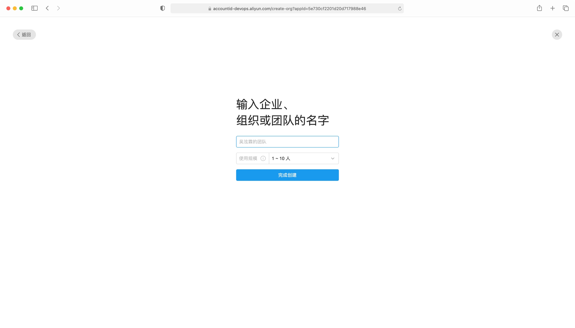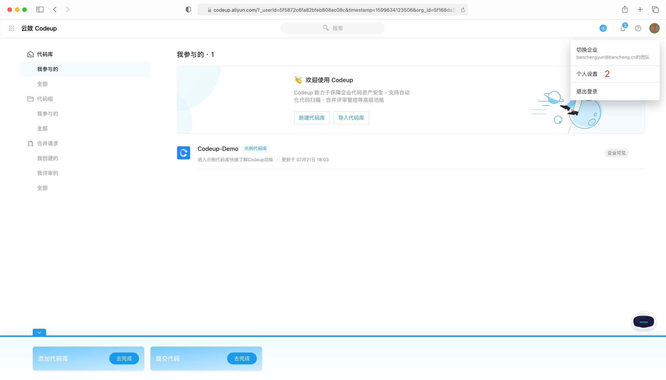 选择阿里云RAM账号登录后即可进入Codeup平台, 如果出现下图的情况请联系技术赋能组邀请加入公司企业, 切勿创建企业