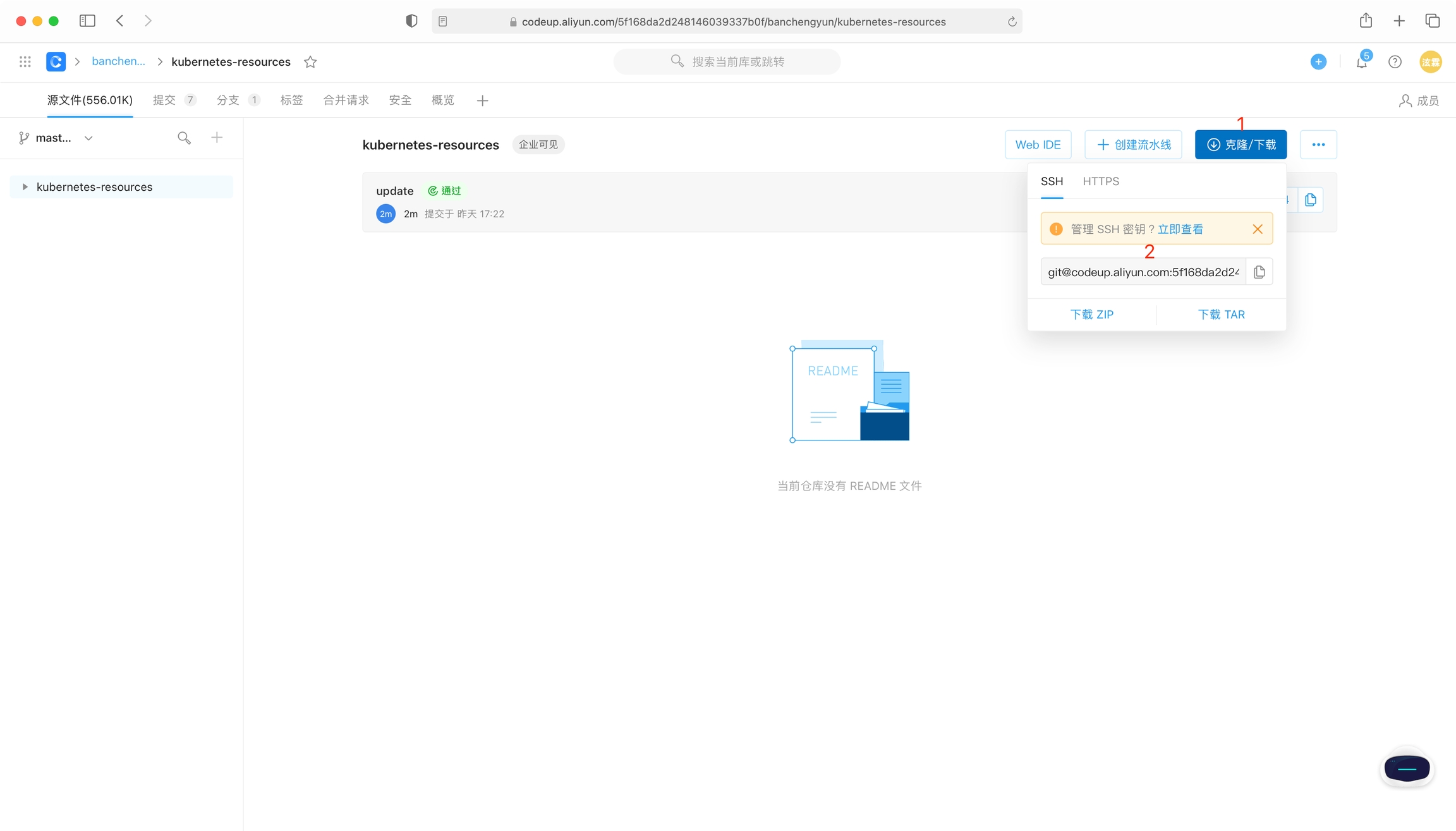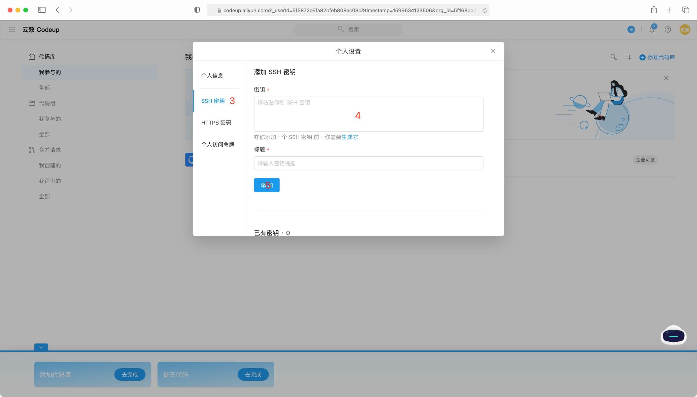 初次登录Codeup需要按以下步骤设置个人帐号的ssh-key