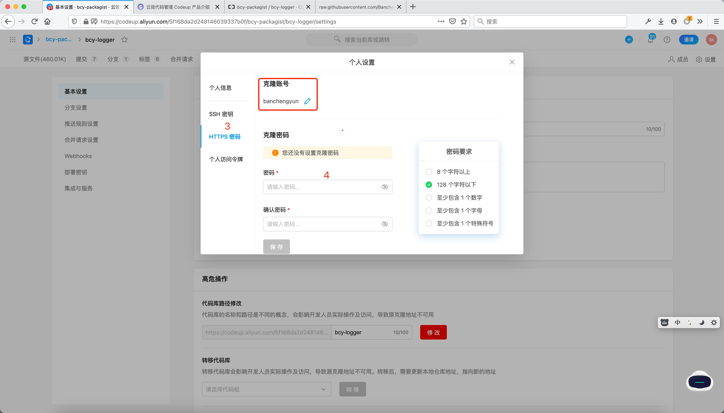 , 这里输入配置HTTPS密码步骤3中的克隆账号