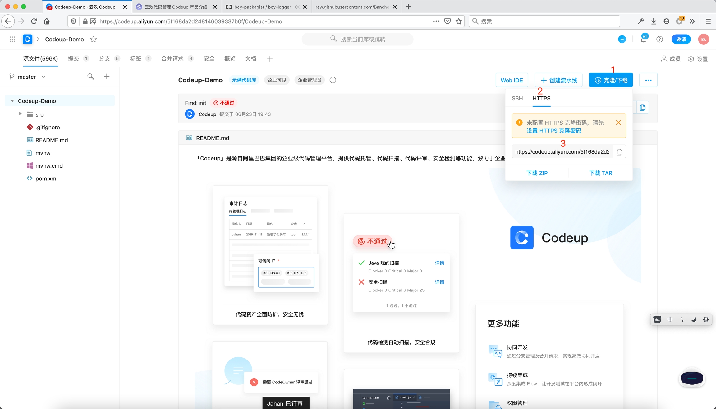 打开Codeup后会发现有一个示例仓库Codeup-Demo
